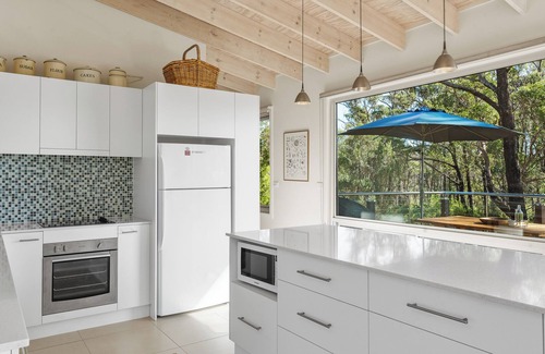 Ebby’s Beach House is a modern take on the Australian beach shack. This three bedroom getaway is both innovative and beautifully crafted. Designed to emphasise its stunning bush and beach setting and positioned to take in the sun all day long, it's easy to kick back and relax here. You can grab a chair and beach umbrella for a stroll to the beautiful Washerwoman’s Beach, or explore the hidden reefs and beaches for a surf or simply walk along the soft sand beaches.