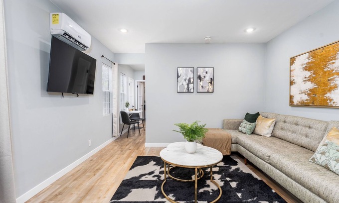 Welcome to your charming one-bedroom, one-bath hideaway! Relax in the bedroom's cozy queen-size bed or catch a movie on the smart TV. Need space for more guests? The living room offers an "Article" sleeper sofa and a queen air mattress is also available. We provide clean linens, towels, shampoo, and all the essentials for a comfortable stay.