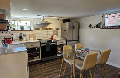 Shockingly sun-drenched lower level (below grade) two bedroom flat. Lovingly curated for your adventures! Please let us know if you need anything during your stay, we will do our best to accommodate you!
