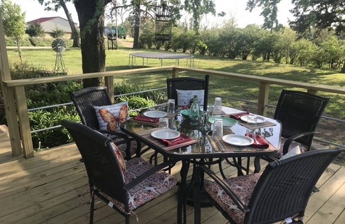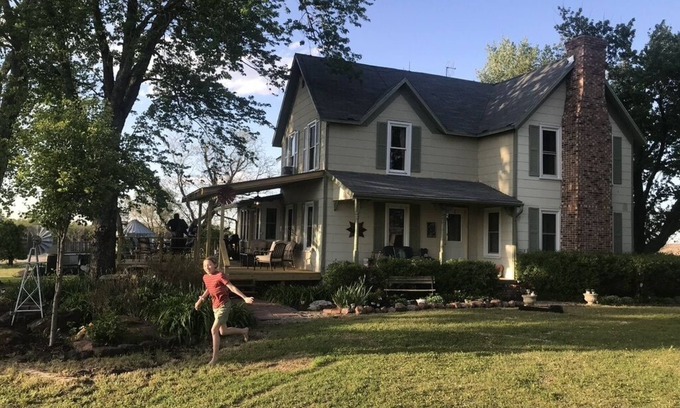 Welcome to our secluded Farmhouse on the Prairie! This house and the land surrounding it was homesteaded in the 1880's by our Danish ancestors. The house has been updated over the decades, and now has an eclectic feel, with items from our travels, antiques and midcentury pieces. Our cozy bedrooms, fully outfitted kitchen, rec room basement and new deck will be sure to make you feel at home. The Kansas prairie boasts some of the prettiest sunsets and sunrises you could ask for!
