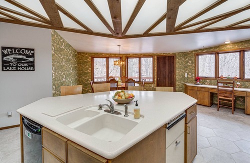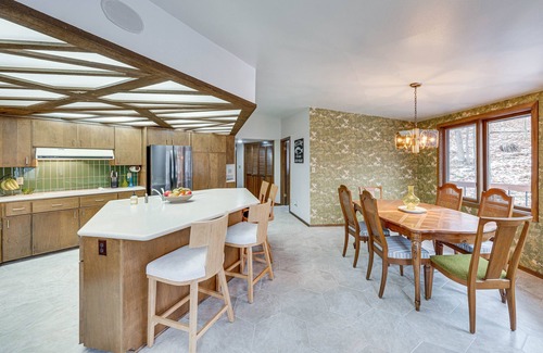 A tranquil countryside escape awaits you at this beautiful 3-bedroom, 3.5-bath vacation rental in Hubertus! This charming house is the perfect retreat for nature lovers, offering easy access to top attractions such as the Kettle Moraine State Forest and the Frame Park Formal Gardens. Return home and relax in the Mid-Century Modern furniture, challenge your group to a game of billiards, or take in seasonal views of Friess Lake. End your evening with a marshmallow roast under the night sky!