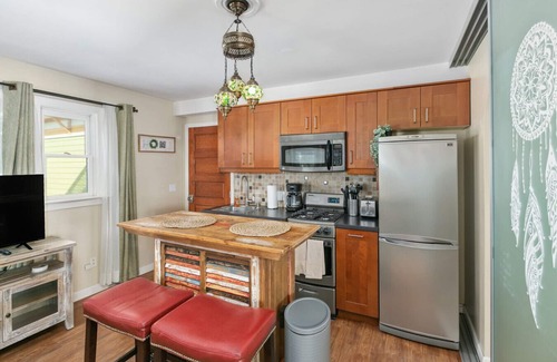 Take it easy in this unique and tranquil getaway. The studio is through the our lush garden.. Our unit has a fully-stocked kitchen in a triplex. Enjoy a night on the rooftop pati or a short walk to several fantastic restaurants Bohemia is in a central location to Balboa Park or the San Diego Zoo It is 15 minutes from airport, 18 minutes to beach. Looking forward to hosting your stay in San Diego. Parking is in the carport in the back of the unit.