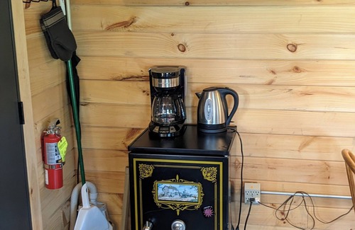 Want to get away? Meadowbrook Cabin is quaint Amish style log cabin on our park-like property. The rustic cabin is located on our beautiful 85 acre eco resort on serene Bee Creek. Enjoy the best fishing in the area along with gorgeous hiking trails. The area offers great restaurants and establishments within a short drive. This eco resort cabin is set up for off-grid, tiny house living complete with a private composting toilet outhouse and solar power! This unit is designed for those who are looking for a glamping experience with the cozy luxuries of a log cabin.