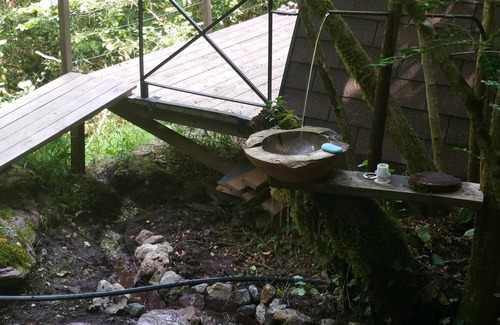 Chalet 1 hour from Nice, in the mountains in the forest, in front of stream and waterfall. Back to nature. Very relaxing. Home 2 people. Access trail walk and river. Ecological construction. Important: Bathroom and summer kitchen OUTSIDE.