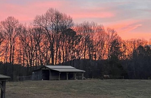 Experience tranquility and reconnect at our Eco-Friendly Zen Glamping Tent private paradise. This unique experience offers the perfect balance of earthy farm-life and tranquil nooks to reflect or meditate. As you swoosh through the beaded curtains, you will be greeted by the serene atmosphere The sounds of nature and intentional design will instantly transport you to a state of relaxation. Come and experience the serenity of our Eco-Friendly Zen Glamping Tent. The The Eco-Friendly Zen Glamping Tent is designed to be light and bright with white and airy decor adorned with beautiful macrame and chakra designs. This minimalist aesthetic creates a peaceful ambiance, providing the ideal space for you to unplug, find inner peace, and reconnect with your true self. We understand the importance of staying connected, even during your retreat. That's why Eco-Friendly Zen Glamping Tent is equipped with lighting and a charging station for your phone, ensuring that you can still stay connected to the outside world if needed. Whether you choose to bring watercolors and create art, journal your thoughts, or simply meditate and decompress, the Eco-Friendly Zen Glamping Tent offers you a beautiful and tranquil setting to unwind and and get reconnected to yourself and your loved ones. Along with the additional amenities, guests will have a queen-sized, memory foam bed, camp table, a campfire grill, and Adirondack chairs to enjoy the campfire and views. The brand new bathhouse at both our glamping tents is a beautifully designed structure made with local sawmill wood and repurposed tin. It features a lighted walking path for easy access. Inside, you will find a hot shower with benches, hooks, and storage areas for your belongings. The floor is adorned with natural stone, giving it a rustic and natural aesthetic. Adjacent to the bathhouse is a private bathroom with a flushing toilet, sink, and a designated area to put your belongings. The bathhouse is cleaned daily to ensure a comfortable and hygienic experience for guests. Please provide your own towels and bath products. The main tent accommodates 2 but you are welcome to bring your own tent and have two friends or kiddos join you. There is a second tent on the property within walking distance of this tent so you could rent both! Come experience the serenity of our Zen Den Glamping tent, where you can escape the noise of everyday life and find a moment of peace and rejuvenation. Guests are free to explore the property and can expect to see the various farm animals who call Thrive Farm home: goats, gentle horses, miniature horses, and friendly dogs and cats. The grounds offer an invitation to immerse yourself in nature, from encounters with bunnies and deer to the myriad of birds. Lay in your hammock and enjoy it! You are welcome to go into the goat pasture but be sure to click the gate shut every time. They LOVE to get out and go nowhere. Feel free to inquire about farm tours or mindful equine therapy, both of which can be arranged upon request. Text your host, Susan if you need anything. There is firewood available on property. The cute little town of Lafayette, GA is 5 miles away where you can find a few restaurants and boutiques. Queens Lake is about 4 miles away. I f you are not grilling, there are 5 pizza places in town, but we most recommend The Crushed Tomato which is local. If you are here during spring, summer or fall, check out our local Lafayette Farmer's Market. This is a very proud farming community, and the market has grown so much in the past few years. Sometimes there is live music in the little city of Lafayette. The food at Toki is decent and the Chinese food at Number 1 Chinese is surprisingly consistently good. Lucky Eye Q is awesome if you LOVE smoked meat that is both plentiful & delicious. And everyone likes our local Station House restaurant. Casual bar/restaurant with interesting Eastern twists, as the chef is Thai. The donuts from Dough & Co are worth every calorie. There is a dollar general 5 minutes away and town is 8 minutes away.