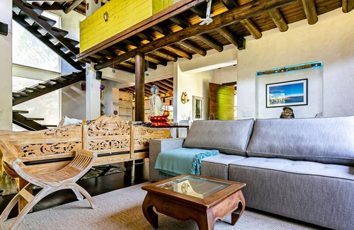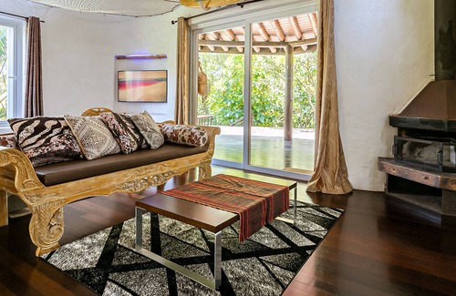 Bioconstructed house with alternative materials: round clay walls (great thermal comfort) and green roofs. Large pvc windows with mosquito screen and direct access to the lagoon.