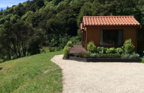 Very quiet ,set among native trees and orchards with stunning views out the valley to Tasman Bay .Secure parking .