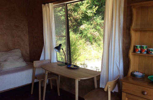 Eco farm , off grid 20 minutes from Nelson township. Luxury cabins providing one double bedroom , day room with single bed and bathroom with shower ,toilet and flush composting toilet . Fridge , food prep area and sink for breakfast and lunch. Plates, cutlery ,and hot water burner provided