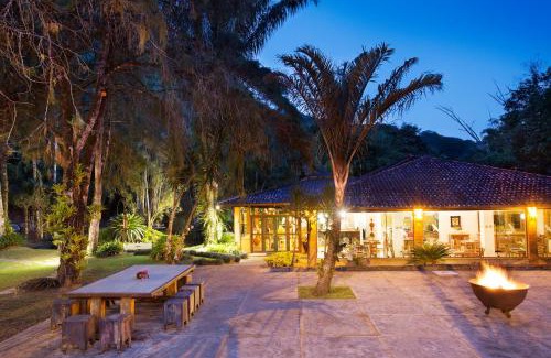 Villa São Romão features private chalets and a picturesque hilltop location 13 mi from Lumiar. Surrounded by quaint cobblestone courtyards and flowered gardens, it offers a pool and eco-tourism activities. Guests at São Româo can enjoy a scenic nature trail, hike, or book a rafting course. They can then relax with a drink on the furnished veranda while admiring the forest view. With a warm touch of color, the chalets at São Romão offer a private patio with a hammock and pleasant garden views. All have a TV, mini-bar and DVD player, plus air conditioning and heating. Guests can enjoy a daily breakfast buffet with croissants and jams. The cozy restaurant features a fireplace and serves homemade dishes with organic countryside ingredients. Villa São Romão is 17 mi from São Pedro da Serra city, and 31 mi from Nova Friburgo. It offers free Wi-Fi in public areas and complimentary parking.