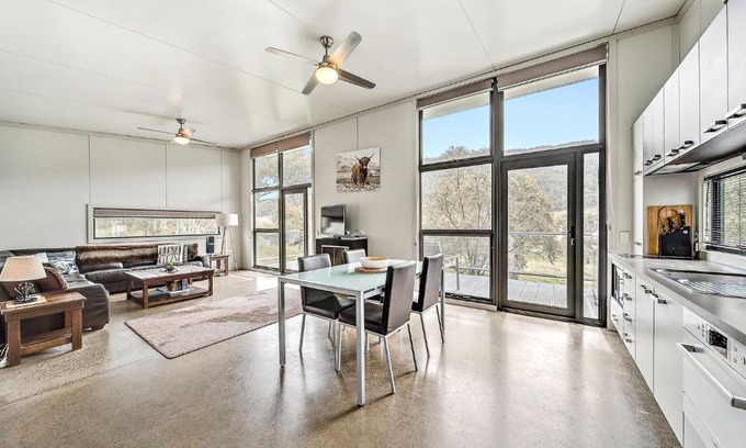 Ecocrackenback 4 Sustainable chalet close to the slopes is located in Crackenback, just 17 miles from Snowy Mountains and 6.2 miles from Ski Tube. This property offers access to a balcony, free private parking, and free Wifi. Perisher is 23 miles from the vacation home. The vacation home features 2 bedrooms, a fully equipped kitchen with a dishwasher and a microwave, a washing machine, and 1 bathroom with a hair dryer. Guests can take in the ambience of the surroundings from an outdoor dining area or keep warm by the fireplace on colder days. The accommodation is non-smoking. Guests can make the most of the warm weather with the property's barbecue facilities. Guests at Ecocrackenback 4 Sustainable chalet close to the slopes will be able to enjoy activities in and around Crackenback, like skiing, horse riding, and cycling. If you'd like to discover the area, fishing, canoeing, and hiking are possible in the surroundings. Lake Jindabyne is 13 miles from the accommodation, while Thredbo Alpine Village is 15 miles away.