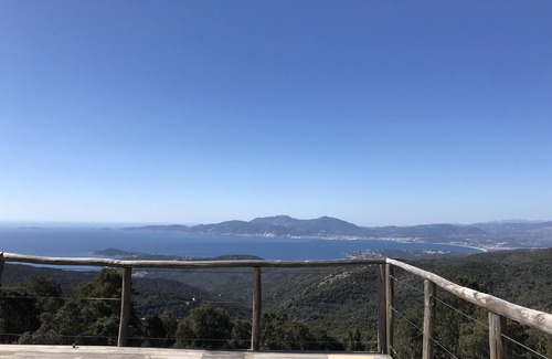 This haven of peace is located in a small wooded area perched at 500 above sea level where olive trees, oaks, arbutus and immortelles rub shoulders. You will benefit from an impregnable view, by the uniqueness of the geographical situation of the place, on the gulf of Ajaccio and the mountain range of the highest peaks of Corsica.