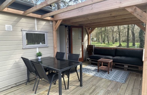 The lodge is located at the back of the park, on a quiet grass meadow. The place is shaded, at the end of the day you will have a lovely evening sun to enjoy. There is a bike available if you want to get some fresh croissants. If you need some entertainment, walk to the terras next to the pool. You park your car for free next to the lodge.