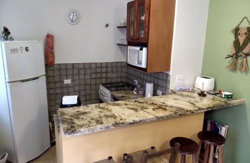 Simple and comfortable, with air conditioning in the bedroom and ceiling fan in the living room. Large balcony with hammock, barbecue, bench and table where you can make all meals. Screen on the windows and door guarantee distance of gnats when indoors. For couples or families up to 4 people. Excellent choice within 30 meters of track for one of the most beautiful beaches of Ilhabela! It has a bakery across the street where you can buy in addition to freshly baked bread, all sorts of convenience items. There is an open space for parking a vehicle and the wi-fi is complimentary. Smoking is not allowed inside the house, but there is a balcony that can be used for smoking.