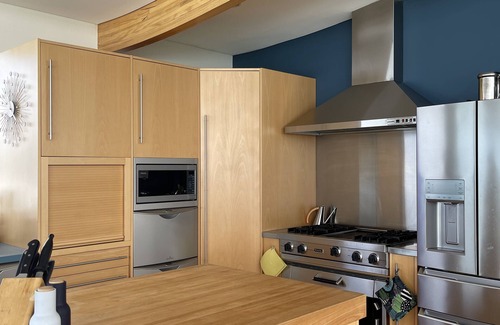 The house is spacious and comfortable and filled with contemporary art and furniture crafted by some of Tasmania’s best artists and artisans. Four glass walls fold away to allow the indoors and outdoors to merge. The fully equipped chef's kitchen features Gaggenau and Viking appliances. The generously stocked pantry contains tea, coffee and cooking staples for your use.