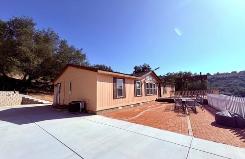 Stay on a peaceful 35-acre Citrus Orchard in the heart of De Luz Temecula. This 4-bed, 2-bath villa sleeps 8 and features a 1-acre green lawn, panoramic orchard views, and modern amenities. Perfect for families, couples, or group getaways—just minutes from wineries and Old Town Temecula.