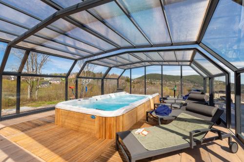 Providing mountain views, Eden'Roc in Labaroche features accommodations, an outdoor swimming pool, an indoor pool, and free bikes. A hot tub and a ski equipment rental service are available for guests. The bed and breakfast provides rooms with air conditioning, free private parking, and free Wifi. All rooms have a coffee machine and a private bathroom with a hot tub and bathrobes, while selected rooms include a fully equipped kitchen. At the bed and breakfast, all units have bed linen and towels. Guests at the bed and breakfast can enjoy a continental breakfast, and breakfast in the room is also available. There is an on-site coffee shop. Guests at Eden'Roc can enjoy skiing and cycling nearby, or make the most of the sun terrace. House of the Heads is 11 miles from the accommodation, while Saint Martin Collegiate Church is 11 miles away. Strasbourg International Airport is 46 miles from the property.