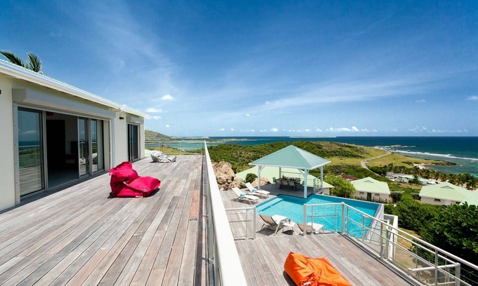 Magnificent property located on the heights of Oyster Pond, splendid 180 ° sea view, facing Saint Barth, Tintamarre and Galion beach. It is on the French side, at the border of the border with the Dutch side