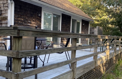 Recently renovated wonderful 3 bedroom, 2 bath Vineyard house. Our guests will be delighted by the clean, beach vibe renovation in our house which includes new hardwood floors, a cooks kitchen with stainless steel appliances and quartz counter tops, tiled showers, and a large lounging deck with an outdoor shower and grilling/dining area. The family room is bright and comfortable with 3 sliders looking out on the yard and a vaulted ceiling. There are ceiling fans and air conditioning units. Throughout the house. The three bedrooms include 2 rooms with queen beds and 1 room with 2 full beds. There is a fully equipped laundry area in the basement in addition to a lounging spot positioned to watch the ping pong table. Our house is located on a culdesac and enjoys great privacy while being only 1.5 miles to South Beach and Edgartown Village. We have equipped the house with everything you need for a relaxing vineyard vacation including bath towels, beach towels, linens, beach chairs, internet and other amenities. There is a bonus lounge area and ping pong table in the basement. Come and enjoy all the Vineyard has to offer right outside your doorstep including Morning Glory Farm, Katama General Store and Edgartown Great Pond.
