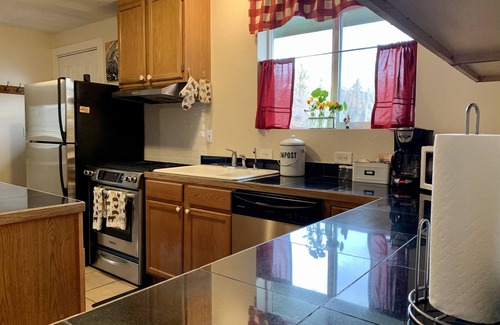 1100sf, single story guest house that's a couple minutes from the town of Rifle, yet backs up to vast open space. Sheltered from view of the highway by trees, boasts tremendous sunsets over the Roan Cliffs, and views of the Hogbacks and Mamm Peak. "R Farm" is a developing farm w/ sheep, goats, chickens, ducks, dogs, and cats. The guest house is adjacent to our family home and near the barn. Abundant opportunities for local outdoor enthusiasts or sit by the fire and watch the wild turkeys.