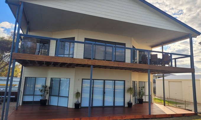 EDITHBURGH SEA VIEWS is a lovely 2 storey holiday home on the Esplanade between Edithburgh and Sultana Point, accommodates up to a maximum of 10 guests with plenty of room for parking and the boat! Driveway at front of property with access to rear double carport at rear. With Free Wifi!