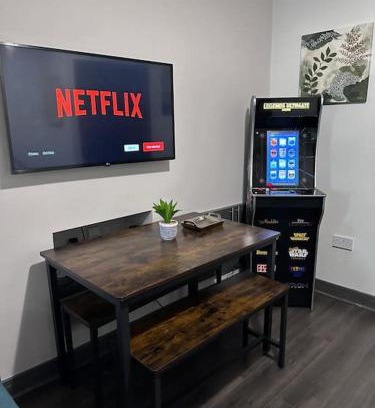 EDMONTON - 4 bedrooms, Sleeps 8, 3 bathroom Contractor Base is located in London, just 2 miles from Tottenham Hale Tube Station and 3.8 miles from Wood Green Tube Station. The property is around 3.9 miles from Southgate London Tube Station, 4.8 miles from Alexandra Palace, and 5.7 miles from South Woodford Tube Station. Woodford is 6.2 miles away and Snaresbrook Tube Station is 6.3 miles from the vacation home. With free Wifi, this 4-bedroom vacation home features a satellite flat-screen TV, a washing machine, and a fully equipped kitchen with a dishwasher and oven. Towels and bed linen are available in the vacation home. The property has an outdoor dining area. Guests can relax in the garden at the property. Cockfosters Tube Station is 5.7 miles from the vacation home, while Emirates Stadium is 5.9 miles from the property. London City Airport is 14 miles away.