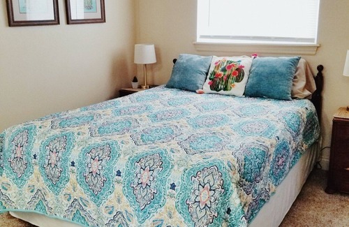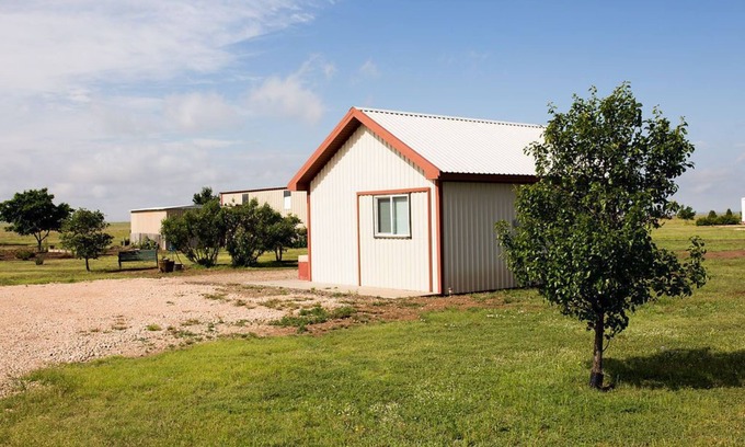 One Bedroom NICE efficiency close to Palo Duro Canyon and Canyon town square with its unique shopping and dining district. The peaceful, quiet setting is perfect for relaxing after a day in the Canyon! Guesthouse has a Queen bed and a Twin Bed, Comfortably sleeps 3. fully equipped kitchenette with refrigerator, and microwave. The bathroom with shower is very nice- not handicapped accessible. Heat and Air Window unit, provide all year comfort