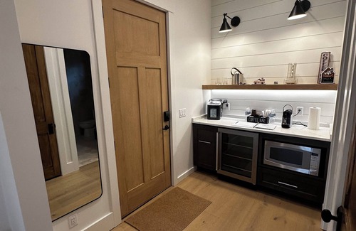 This charming cottage suite offers a cozy 1-bedroom retreat with 1 king bed and a twin futon. Enjoy the excellent amenities like heating, AC, and WiFi. The bathroom features a dreamy shower, makeup mirror and hairdryer for your convenience. Includes a mini kitchen with Nepspresso pixie (pods, sugar/creamer provided), microwave, ice maker and mini-fridge. Experience the magic of our 500+ acre estate with multiple lakes, gorgeous live oaks and bountiful wildlife. A great place to unwind and call homebase while you're away. We hope you enjoy your stay!