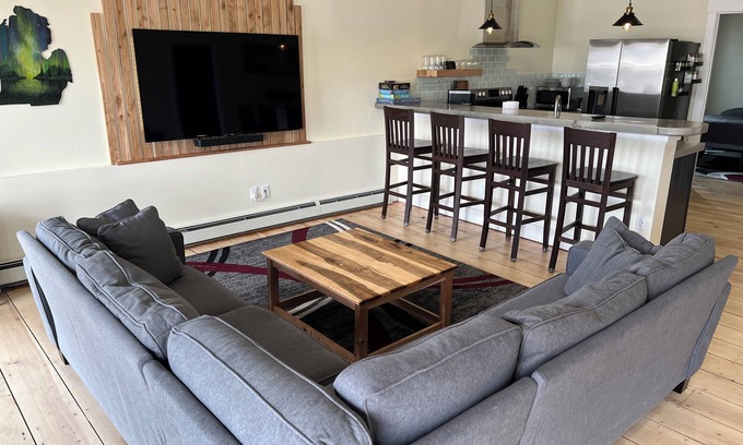 Enjoy a modern comfortable, warm, and expansive living space during your adventures in the UP. A welcoming space with full size kitchen amenities, 2 bedrooms with a King bed and 2 twin beds make for a perfect fit for most any family. Ample room for a group to enjoy some quality time together catching up on life or board games. A short walk to the beach for a swim in the summer, or Ice Fishing in the winter. Ample on premise parking for your snowmobile trailers or other outdoor entertainment.