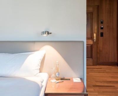 The Einstein Hotel enjoys a quiet location in the center of Sankt Gallen, at the edge of the pedestrian zone. It offers a fine dining restaurant and a bar, as well as free WiFi access in the entire building. The rooms feature luxurious materials such as marble, cherry wood, high-quality fabrics and natural wool carpets. A work desk is available in every room. Wired internet access is available in the rooms free of charge. The Einstein Gourmet restaurant overlooks the Old Town of St. Gallen and offers creative haute cuisine. The more casual Bistro St. Gallen is available for all-day dining. The Einstein Bar serves a variety of cocktails in classy surroundings. The year-round fitness center with a spa section is directly connected to the Einstein Hotel and can be used free of charge (minimum age 14 years accompanied by parents or legal guardians.). It includes an extensive gym, indoor pool, steam and soft steam bath, sun beds, and a variety of massages and body treatments. The St. Gallen-Altenrhein Airport is 12 mi away, and Zurich-Kloten Airport is 50 mi away. Private garage parking is available. Guests receive the Mobility Ticket which includes free use of the public transport in and around St. Gallen and to Lake Constance. Minimum age for spa is new 12 years accompanied by parents or legal guardians.