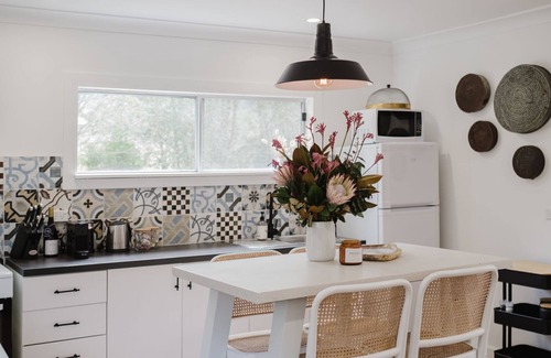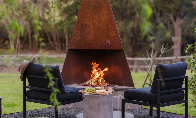 This unique barn is set amidst serene natural beauty, offering an idyllic couples retreat for those seeking relaxation and tranquility. Unwind by the beautiful outdoor fireplace, or enjoy dining in the converted shed, now transformed into a stylish and charming space. Take in alfresco meals beneath the enchanting willow tree or indulge in a peaceful picnic by the dam under the shade of a majestic fig tree. For an added touch of magic, explore the creekside firepit, built into the hillside—a perfect spot for stargazing and unwinding.