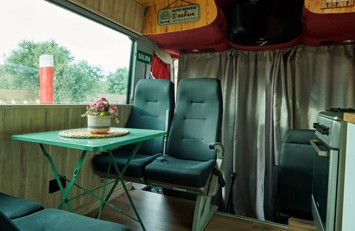 This extraordinary bus converted into tourist accommodation gives you stunning views of the pool and offers you an unforgettable stay with all the comforts.