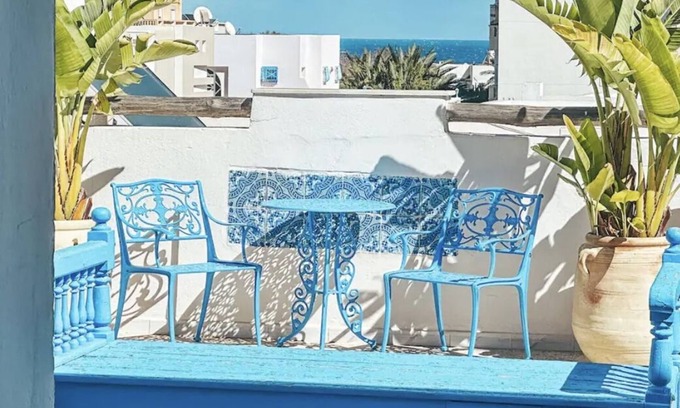 El houch is an apartment with a traditional Tunisian decor displaying a unique and typical style, including 1 bedroom, a large terrace with a bbq and dining area) and a rooftop (roof terrace with benches) with a nice view which benefits from the mild Mediterranean climate.