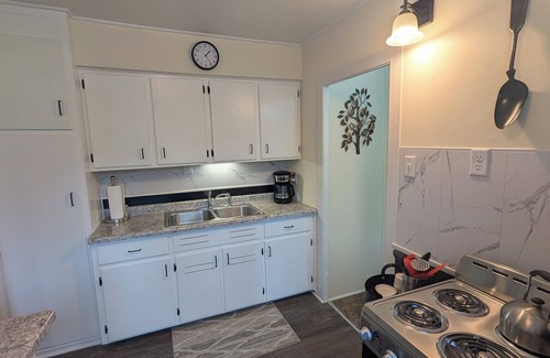 This house screams the color green and verde, meaning green, elevates its ambiance. It sits on a corner lot with enough greenery, grass, and trees, to give it a country feel. Yes, so cool...a country feel in a neighborhood that's a hop, skip, and a jump from the action of downtown Fort Wayne. It's country life in the BIG city...It's the El Verde Escape! Come for a refreshing and peaceful stay!