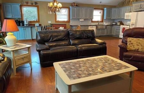 This newly constructed property features exceptional amenities designed to make your stay comfortable and convenient. The spacious layout includes two bedrooms on the main floor, each accommodating large bunk beds, plus a lower level with additional sleeping arrangements. You will love the large kitchen equipped with everything you need to prepare meals, alongside inviting communal spaces for dining and lounging. Step outside onto the expansive deck for alfresco dining or simply relax with a gas grill ready for your barbecues. Additional perks such as Wi-Fi, board games, and streaming services provide entertainment when it’s time to unwind after a busy day of wedding festivities.