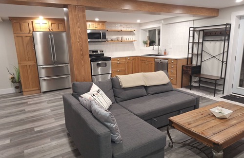 Whether you're gearing up for thrilling ATV rides, snowmobiling across picturesque landscapes, or hitting the slopes at Beaver Valley Ski Club (just 20 minutes away) or Blue Mountain Ski Resort (40 minutes), this cozy retreat is the ideal base for your outdoor adventures. After a day of exploring, unwind in comfort with modern amenities including a soaker tub, a full kitchen, and a laundry area.