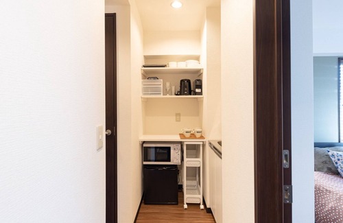 The nearby RokugoDori Shopping Street is a short 6minute walk away and offers various restaurants cafes beauty stores and supermarkets for your convenience / This 29 sqm suite on the 3rd floor has a living room with a sofa bed and balcony a bedroom with 2 single beds and a compact kitchenette with basic cooking facilities and a Nespresso machine The bathroom and toilet are separate and the wooden blinds provide a cozy atmosphere The space is tasteful and wellequipped with facilities and the living room and bedroom have natural light Suitable for work and relaxation it offers a comfortable and convenient stay