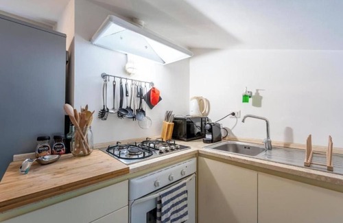 The apartment is located in a quiet building with an elevator that reaches the third floor. Please note that there are 25 steps to reach the attic apartment. The location is ideal for exploring Rome's historic sites. Within walking distance, you'll find the Trevi Fountain, Quirinale, Pantheon, Piazza Navona, Spanish Steps, Via Condotti, Piazza Venezia, and the Roman Forum.