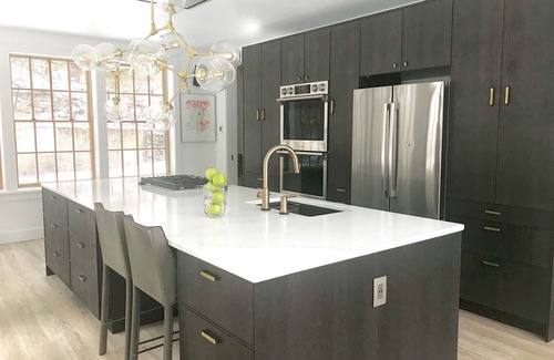 The chef's kitchen has the latest Samsung Professional Series stainless appliances: 2 double wall ovens, 5-burner cook-top, convection microwave combination; plus professional vented hood, two Bosch dishwashers and French-door refrigerator/freezer; 2 brass touch faucets, and an instant hot water dispenser in the butler’s pantry.