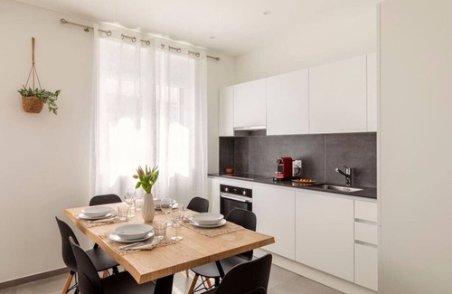 The kitchen is super-equipped. You will have a kettle, a toaster, an electric juicer, and a Nespresso coffee machine. You will find some free capsules as a welcome gift and basic spices and condiments (salt, sugar, pepper, oil, and vinegar) on arrival.