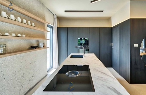 Villa Itea covers an area of 180 m² and is built in a contemporary style with contrasting surfaces of minimalist design, offering accommodation for up to 8 people. Of a total of 4 bedrooms with ensuite fully equipped bathrooms, one is located on the ground floor, and the other three on the upper floor of the villa. A washing machine and ironing board are at your disposal. Each room has its own private terrace with a view of the greenery and untouched nature.