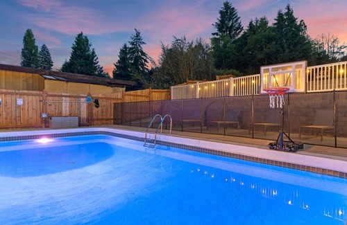 Discover a hidden gem in Seattle! This stylish 4BR/3BA retreat offers a rare find in the city — your very own private heated pool surrounded by comfortable outdoor furniture, perfect for sun-soaked days and evening relaxation. 🌇