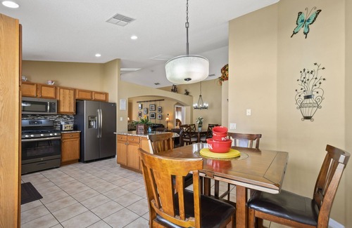This beautifully decorated five bedroom four bath pool house villa is nestled in a private community just 19mi from Disney's Magic Kingdom and all the tourist destination in between. It is the perfect escape for reconnecting. A space for family and friends to relax, unwind and have simply have fun.