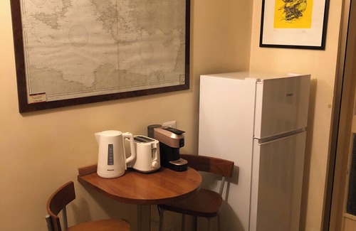 While you're here, you can enjoy all the comforts of home and more, including WiFi and a bidet, as well as air conditioning and an ironing board. Other amenities include laundry facilities, towels, soap, and toilet paper.
