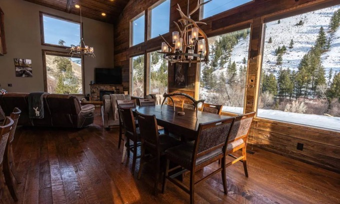 Lined with lumber and timbers from an old barn that was onsite, this unique Cabin will have you calling this place your dream getaway. Set on a rocky mountainside, large windows will give you views from the Salmon river to the beautiful mountains all around. Watch Elk , deer & mtn sheep graze and the nearby mountains while eating. 1/2 mile from Salmon river. Photographers Dark Sky rated. Newly installed Tesla charger. Security cameras in parking lot and backyard. Perfect location to access Lost Trail Powder Man for a great skiing vacation. Only 30 Minutes away!