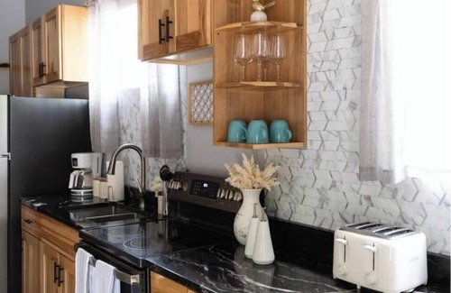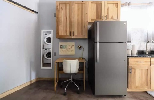 Our 1 bedroom 1 bathroom casita is a charming and chic guesthouse with its own private entrance. Note there is some minimal noise transfer from the main house. At ~500sq ft. our casita is spacious enough to include an en-suite bathroom, kitchen with full size appliances, full size washer and dryer, spacious dining area, closet and workspace, mini-split air-conditioning for max comfort.