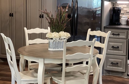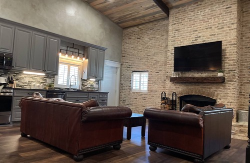 The barndominium is exceptionally clean, beautifully decorated, and equipped with comfortable furniture. The open floor plan allows you to visit with guests while enjoying the large kitchen that's full of amenities.