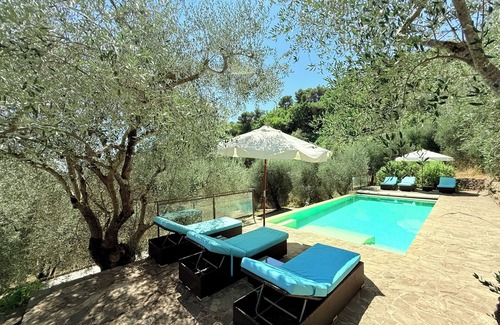 The access to the house is good with only the final 600m being a narrow private road; 500m of this road are tarmac covered, the remaining 100m are dirt track. The surrounding grounds measure approx. 6,900qm and are laid out in typical terraces, planted with olive groves. The 9 x 4 metre infinity pool is nestled in one of the terraces, which is open from 15 May to 15 October.