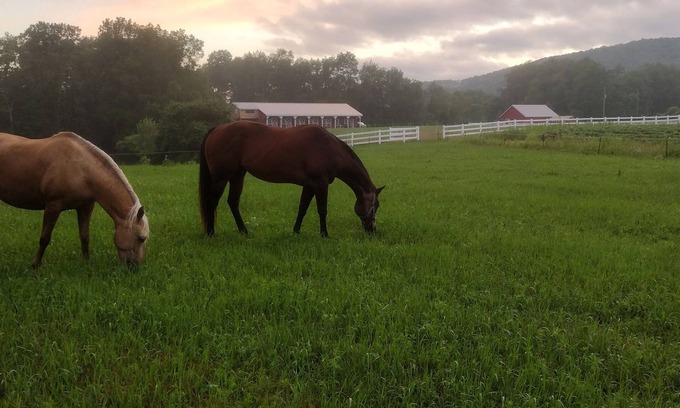Surrounded by green pastures, quiet mountains and grazing horses, your lovingly furnished bedroom in our renovated barn has a private entrance, private bathroom and across from the patio, there is a shared fire-pit. Stroll the peaceful paths that wind through woods & fields or pack a lunch and dine al fresco at the picnic table by the river!