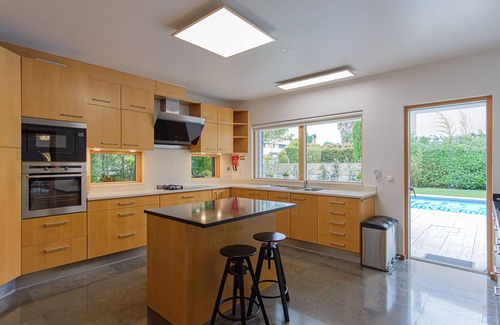 The house is just perfect for families and for several reasons. The living and dinning areas are just amazing, very bright, filled with light, colourful with a wide space and well connected to the outdoors: garden, pool. As the pictures reveal the space in these areas it’s just perfect. As a plus the dinning table seats very comfortably 7 persons.