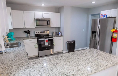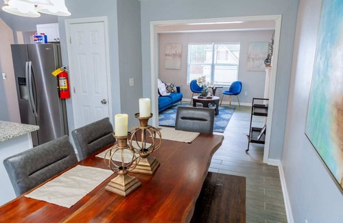 Embark on a tranquil retreat to Fairburn, conveniently located just minutes from the vibrant downtown Fairburn area. Our stunningly renovated haven is an ideal sanctuary for large families or multiple couples seeking a blend of suburban tranquility and city convenience. With its natural light-infused spaces and chic modern décor, this home promises a serene 'home away from home' experience. Benefit from assigned parking on the property and find yourself only 20 minutes from Atlanta Hartsfield Airport and Downtown Atlanta.
